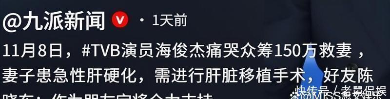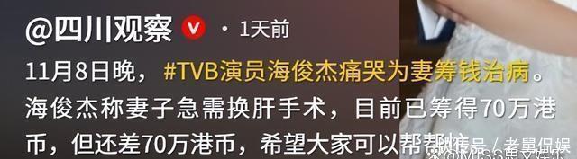 十一月八号晚上十点,香港娱乐圈突然热闹起来。海俊杰在视频里哭得很厉害。他眼睛肿得睁不开。他说话断断续续的。他说他妻子得了急性肝硬化。医生告诉他们必须两天内做手术。手术需要一百五十万港币。钱不够人就救不回来了。很多网友看到这个都呆住了。